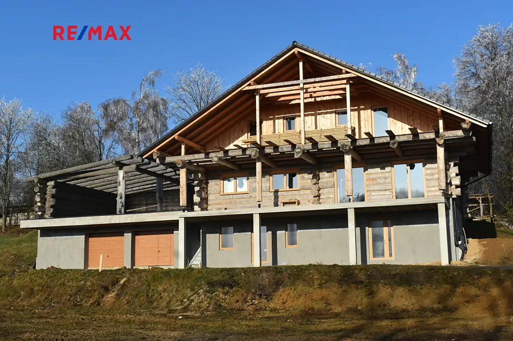 Exkluzívně nabízíme k prodeji nově vystavěný dřevěný nízkoenerget.třípodlažní srub (celk.podlah.plocha 658 m²) se stav.pozemkem (1,09ha). Vyskytná nad Jihlavou (Vysočina).