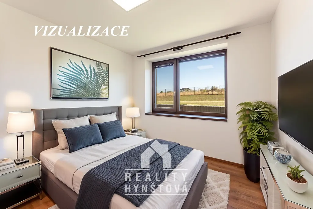 Domy o dispozici 4+KK s garáží (o přibližné zastavěné ploše 165 m2), stojí na slunných pozemcích o velikostech 877 m² a 878 m² v klidné ulici v blízkosti přírody. Jsou bezbariérové, navržené tak, aby byly komfortní a nenáročné na provoz. Interiér domů je světlý, moderní a nadčasový. Přibližná celková plocha domu vč. garáže (16 m2) činí 128 m2.
