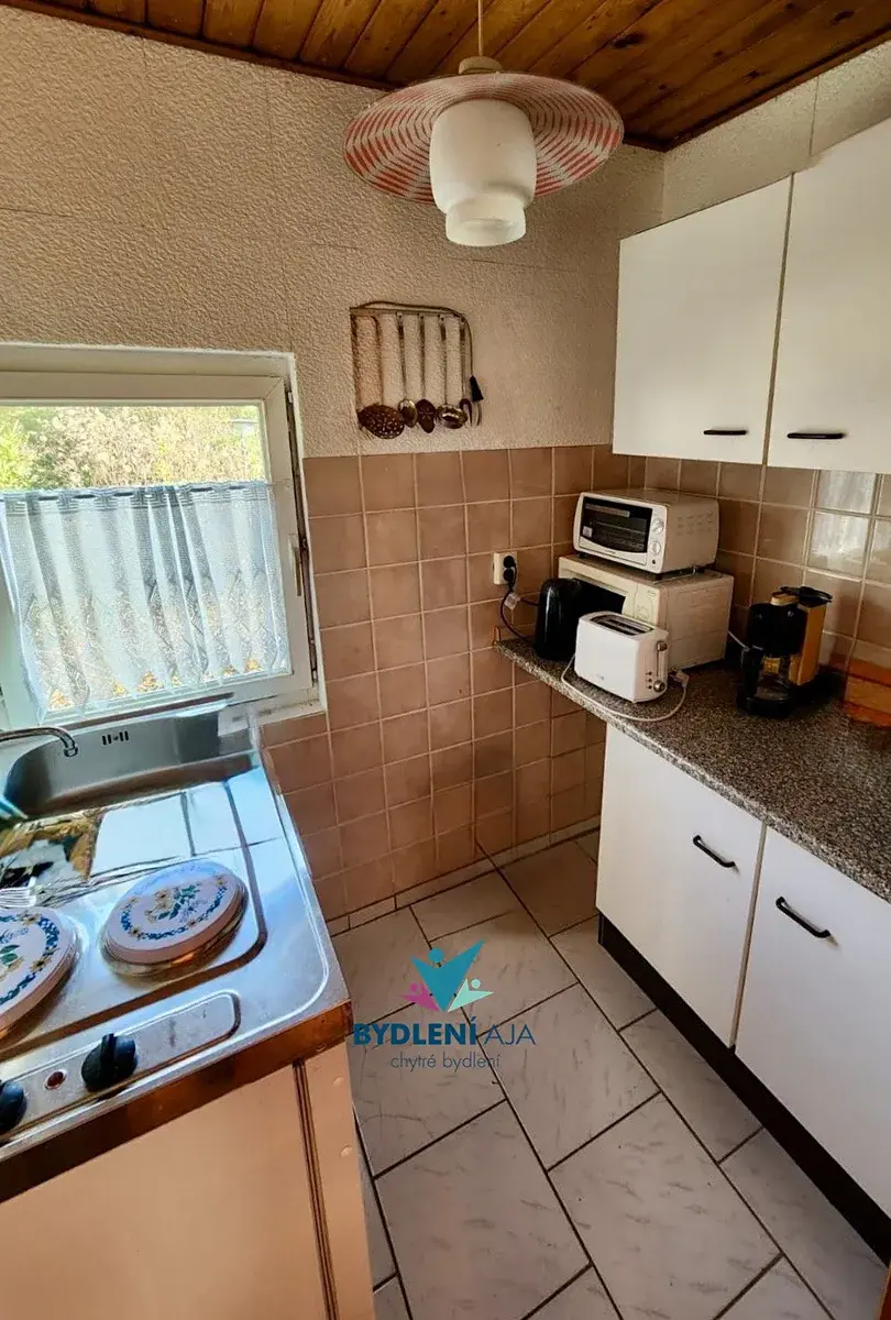 Na pozemku stojí menší zahradní chatka se zastavěnou plochou 15 m², která se skládá z centrální místnosti s kuchyňským koutem. Chatka je podsklepená.