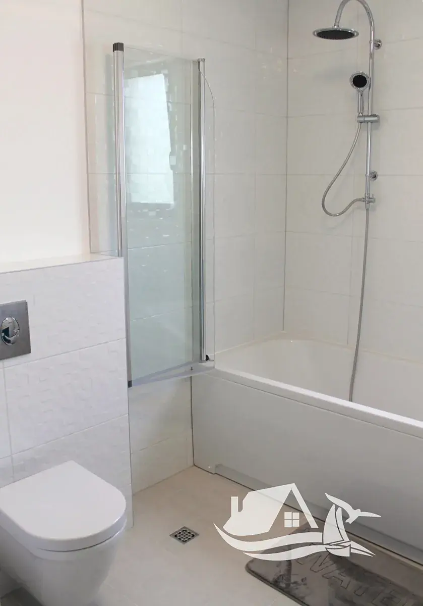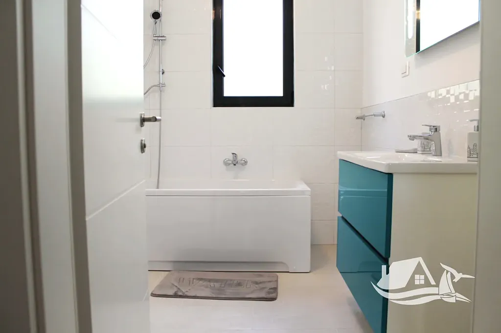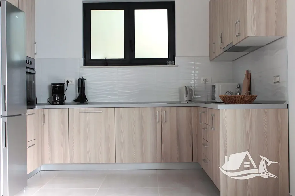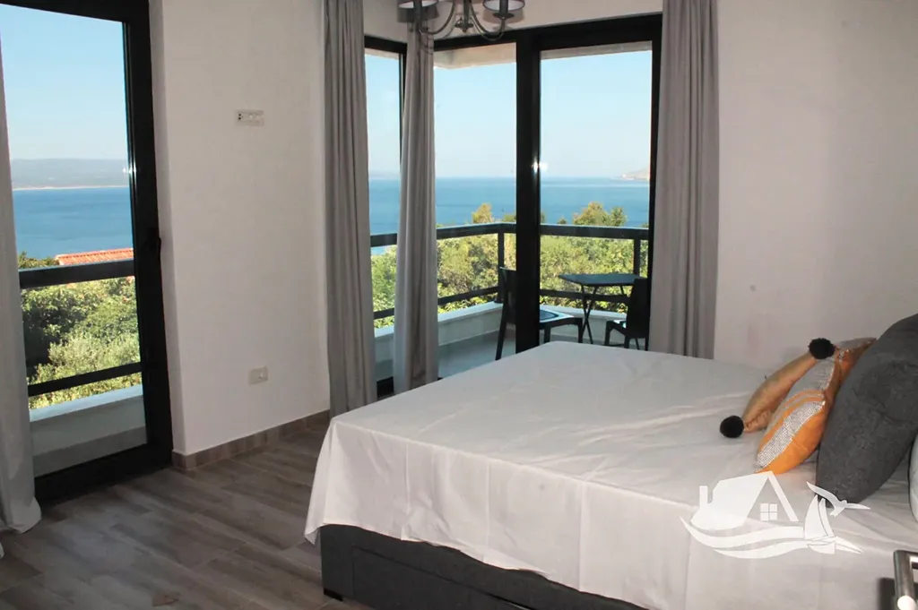 V přízemí a prvním patře se rozkládá hlavní mezonetový byt o ploše 212 m². Vstupní úroveň zahrnuje prostorný obývací pokoj propojený s jídelnou a kuchyní, toaletu pro hosty a přímý vstup na terasu s bazénem o velikosti cca 30 m². Sluneční terasa kolem bazénu nabízí ideální prostor pro odpočinek s výhledem na moře a okolní ostrovy. V horním patře tohoto bytu se nacházejí tři prostorné ložnice, každá s vlastní koupelnou, a balkon o ploše 15 m² s panoramatickým výhledem.