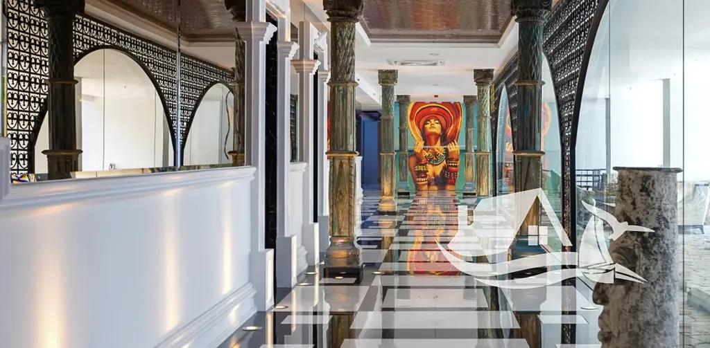- Panoramatické výhledy z baru a lounge na střeše (43. patro) s ponořeným jezírkem s lekníny.