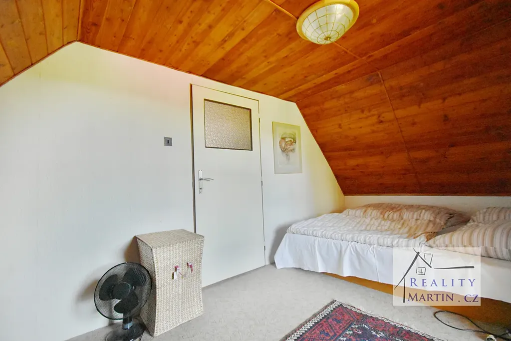 • V patře jsou k dispozici dvě ložnice s výstupem na prostornou lodžii a úložné prostory.