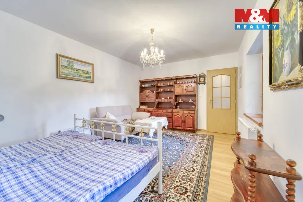 Na prodej rodinný dům v malebné obci Plešovice nedaleko Českého Krumlova. Tento dům o užitné ploše 154 m² je zasazen na polosamotě, zajišťuje klid a soukromí. Na pozemku rozloze 300 m² najdete vše potřebné pro pohodlné bydlení. Dům je rozdělen na dvě nadzemní podlaží. V přízemí se nachází vstupní chodba, prostorná kuchyně s jídelnou, obývací pokoj s přístupem na terasu, ložnice, koupelna se sprchovým koutem, samostatná toaleta a technická místnost s vlastním vchodem. První patro je rozděleno na dva apartmány, které lze pronajímat, nebo využít k dvougeneračnímu bydlení. Vytápění je zajištěno tepelným čerpadlem a elektrokotlem, teplou vodu dodává bojler. Nemovitost je ve velmi dobrém stavu a nabízí ideální příležitost pro klidné rodinné bydlení či investiční záměr.