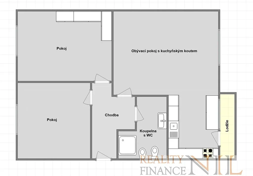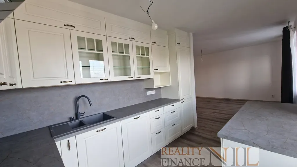 Byt je zařízený kuchyňskou linkou vč. spotřebičů - el. trouba, plynová varná deska, myčka nádobí, digestoř, lednička. Podlahy v kombinaci plovoucích podlah a parket.