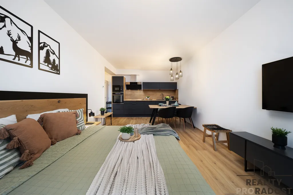 Hledáte opravdu vkusně vybavený apartmán v Lipně nad Vltavou, kam stačí dorazit s kufrem a začít si užívat volného času? Pak doražte do rezortu Korzo Lipno, kde najdete nadstandardně zařízený apartmán, kam se hravě vejde čtyřčlenná rodina. Nachází se ve třetím patře novostavby s výtahem a podzemním parkováním (parkovací stání 400.000,- Kč). Kromě krásné a kompletně vybavené kuchyně, obývací pokoje a malé ložnice zde na Vás navíc čeká infrasauna a fantastický výhled z balkonu na Lipenskou přehradu. Dalšími přednostmi tohoto rezortu je možnost přenechat svůj apartmán na krátkodobý pronájem a nechat si tak na sebe apartmán vydělat s tím, že Vám zbyde možnost si ho také kdykoli využít pro sebe. Rezort Korzo Lipno má s touto investiční nemovitostí několikaleté zkušenosti a turisti se sem tak proto velmi rádi a pravidelně vrací. Na sjezdovku i k jezeru nebo na cyklostezku to máte co by kamenem dohodil a současně jste lehce stranou od hlavní třídy a můžete tak v klidu a nerušeně odpočívat. V přízemí najdete prostorný sklep pro Vaše lyže nebo kola a na ulici přímo před domem bezproblémově zaparkujete. Další velkou výhodou je skvěle fungující recepce, která Vás i Vaše případné hosty vždy mile a rychle nasměruje a poradí se všemi dotazy. Tak neváhejte a přijeďte se přesvědčit na vlastní oči.