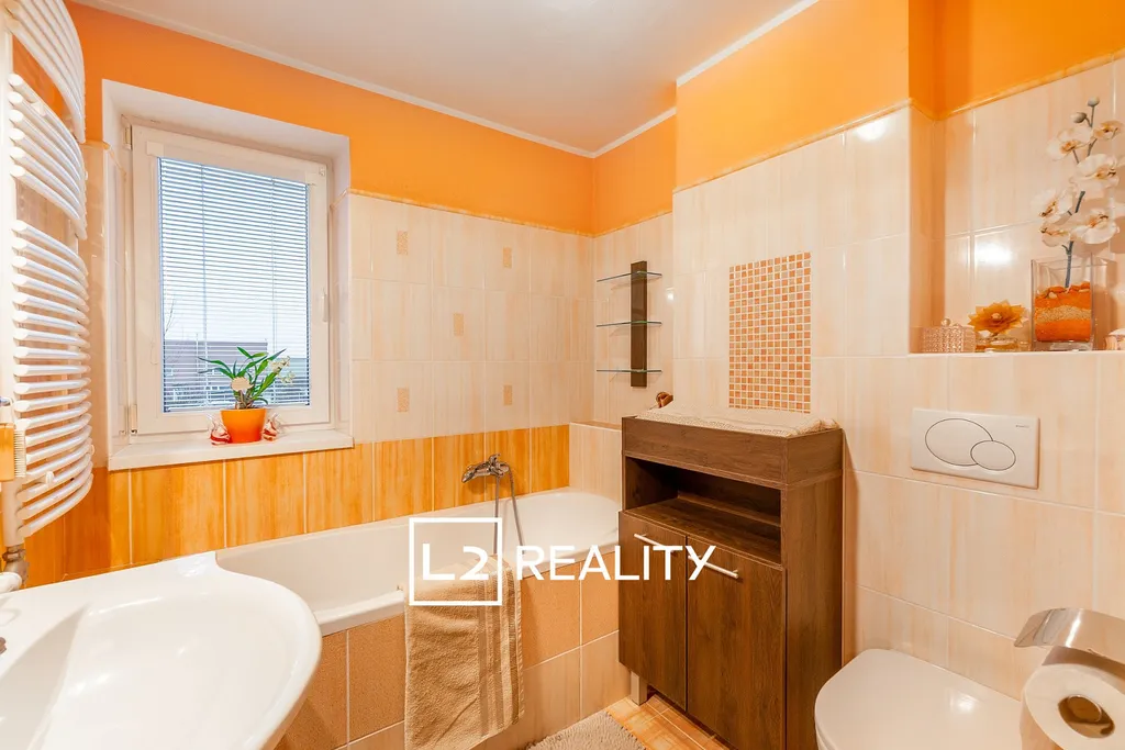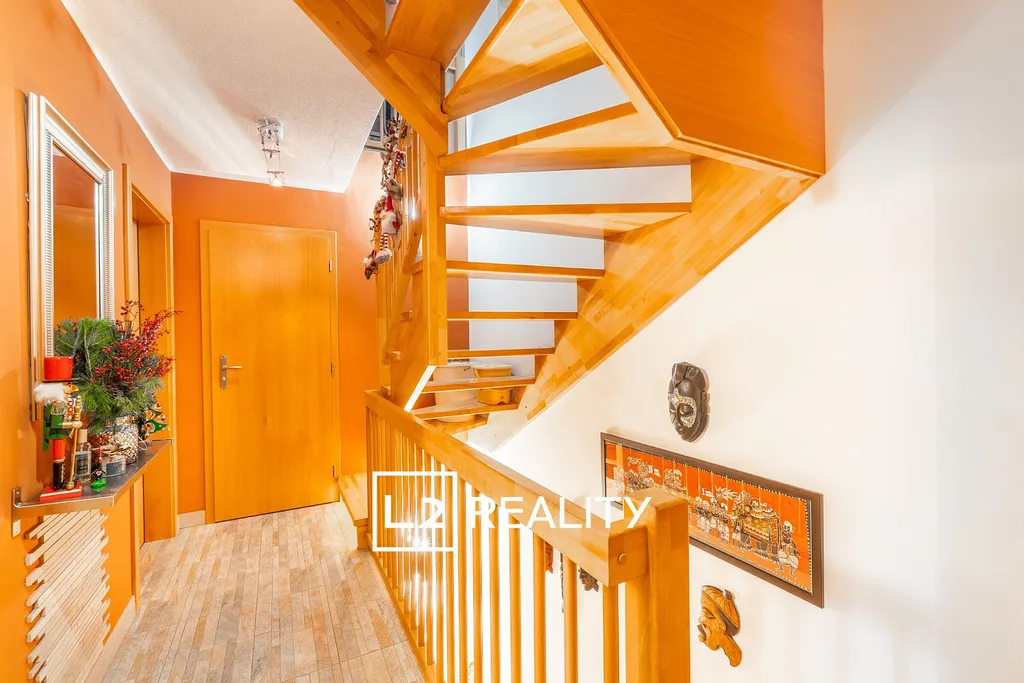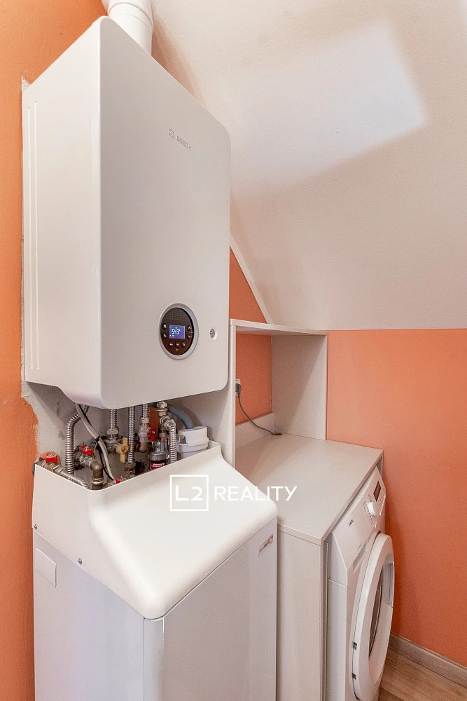Interiér domu působí moderně a nadčasově, byly instalovány nové SDK podhledy se zabudovaným LED osvětlením, velkoformátová dlažba v přízemí s podlahovým vytápěním v obývacím pokoji vytvářejí velmi komfortní atmosféru. Součástí rekonstrukce byla výměna veškerých podlahových krytin v obytných místnostech za dřevěnou plovoucí podlahu a osazení nového plynového kotle Bosch s modulačním hořákem, který má potenciál výrazně snížit stávající provozní náklady na vytápění a ohřev TUV.
