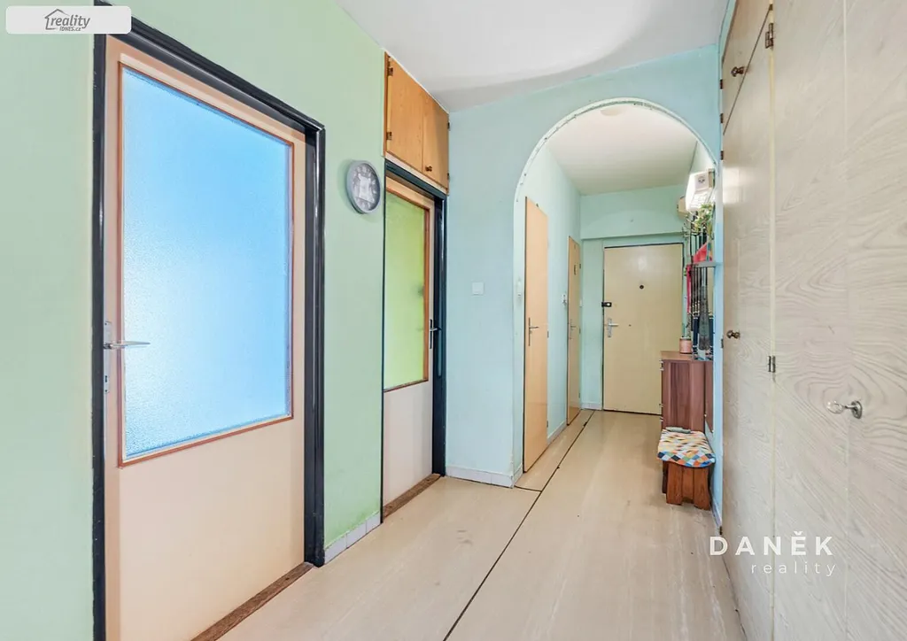 Byt je v původním stavu, vhodný k rekonstrukci podle vašich představ. Hlavní místností je obývací pokoj, odkud můžete vyjít na balkon o velikosti 2 m². Dva samostatné pokoje poslouží jako ložnice a dětský pokoj, případně pracovna. Pokoje a kuchyně jsou orientovány na východ, obývací pokoj potom na západ. K bytu také náleží velmi prostorný sklep o velikosti 11,5 m².