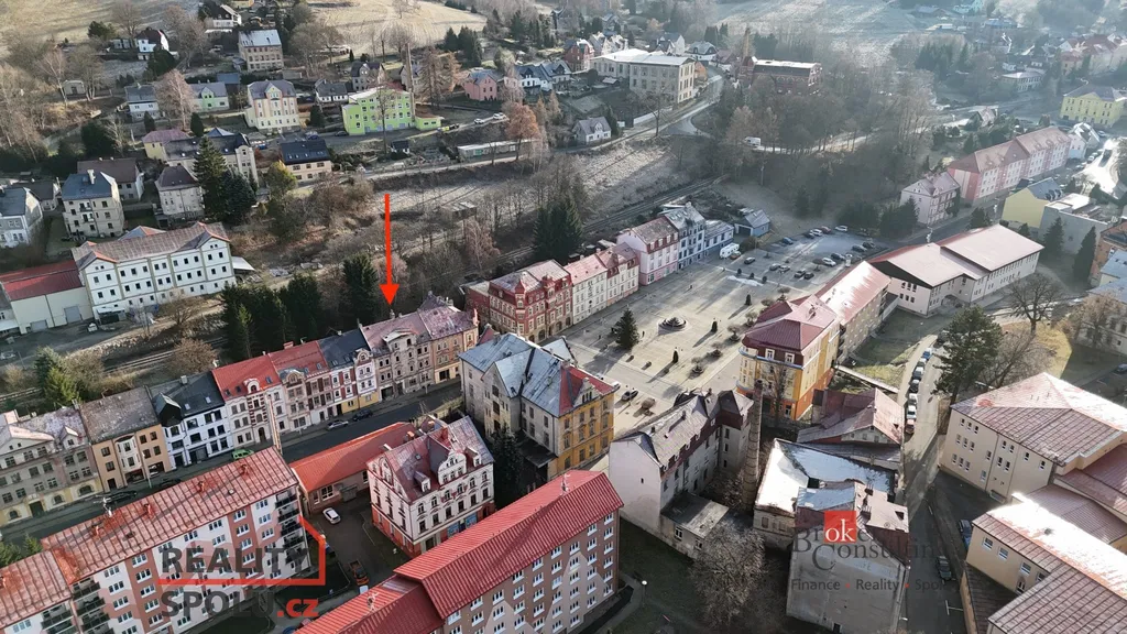 Dům se nachází přímo v srdci Vejprt, jen pár kroků od náměstí.