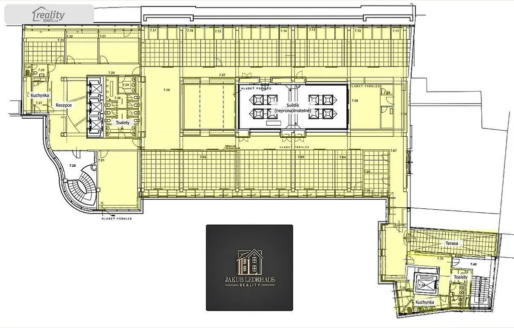 Lze propojit s kancelářemi v 5. patře (974 m²) a získat tak až 1 951 m² kancelářských ploch.