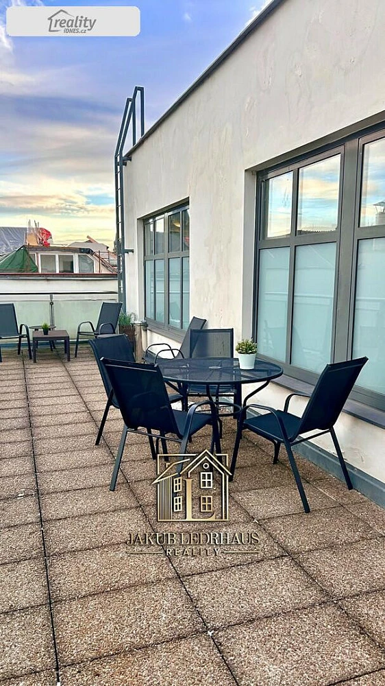 Prostory zaujmou světlostí, moderním designem a privátní střešní terasou s výhledem na Prahu. Dispozice kombinuje open space, samostatné kanceláře, kuchyňku a sociální zázemí.