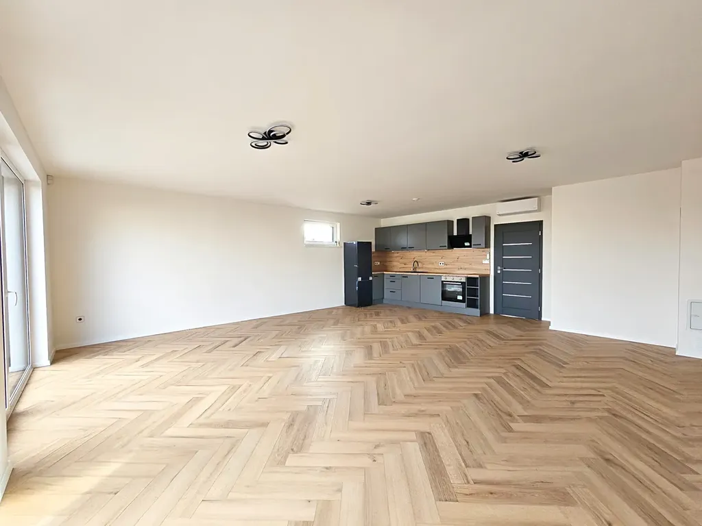 Jednotka disponuje podlahovou plochou 106 m2. V 1 NP se nachází velký obývací pokoj s kuchyňským koutem o výměře 41 m2, vstupní hala, technická místnost, toaleta s umyvadlem a šatna pod schodištěm. Kuchyně s vestavěnými spotřebiči zn. Candy je součástí prodeje. Obývací pokoj je prosvětlen velkými francouzskými okny a v jeho rohu je připravený komín na instalaci krbových kamen. V technické místnosti je umístěn centrální kotel a připravený přívod vody a odpad pro pračku se sušičkou.