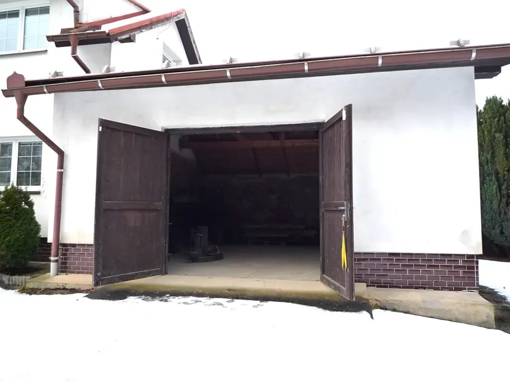 Další stavbou na pozemku je garáž s podlahovou plochou 21 m2 a otvor vrat je šířky 242 cm a výšky 205 cm.