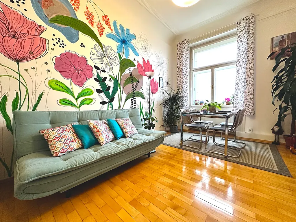 Z halové sekce bytu vcházíme do prostorného obývacího pokoje s kuchyňským koutem, velikostí 18,9 m2, obsahujícím následující spotřebiče: varná deska indukční, trouba horkovzdušná, digestoř, lednicí s mrazničkou, myčkou, mikrovlnkou. Dále navazuje průchozí místnost ložnice, velikostí 21,3 m2, obsahující velkoobjemovou vestavěnou šatní skříň s dostatečným úložným prostorem. Technické parametry bytu jsou: dle požadavku majitele došlo k rekonstrukci elektřiny a byt je plně funkční bez nutnosti plynu, tedy jak ohřev vody tak ohřev radiátorů přes el. kotel a el. bojler. Krom rekonstrukce elektřiny, prošel byt rekonstrukcí podlah, nové koupelny s vkusným výběrem velkoformátové dlažby a obkladů s důrazem na vyšší kvalitu, dále nová kuchyň vč. spotřebičů, vestavba velkoobjemové vestavěné skříně,