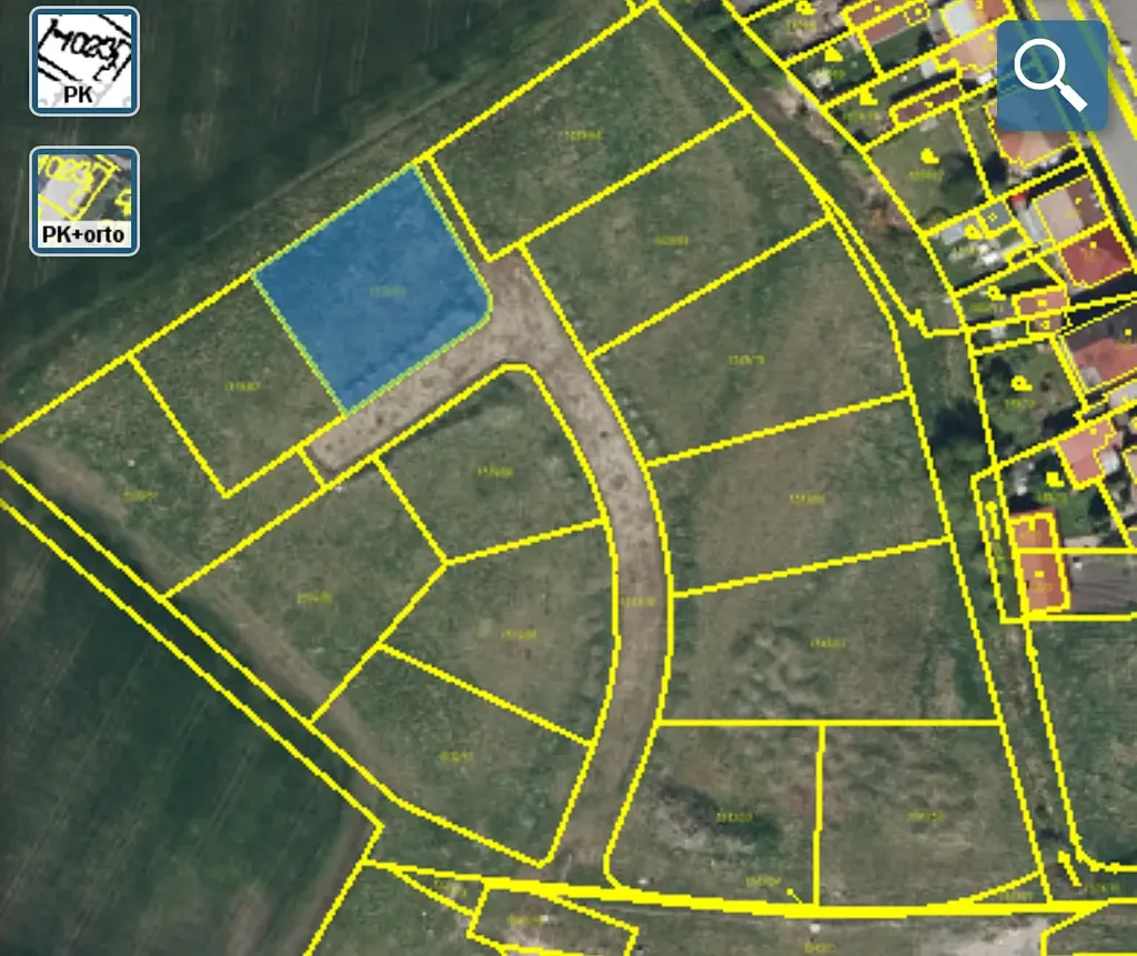 - 9 stavebních pozemků: 1 082 m2, 1 000 m2, 1 427 m2, 1 166 m2, 1309 m2, 1 097 m2, 950 m2, 733 m2, 1 057 m2
