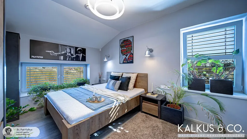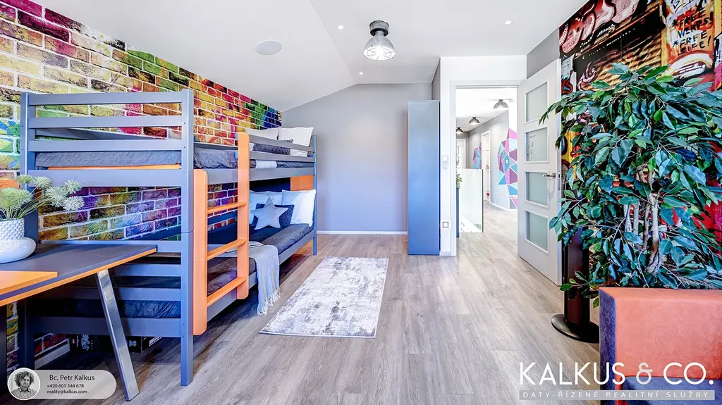 S dispozicí 6+kk a užitnou plochou 219 m² na rovinatém pozemku o výměře 1 530 m2 nabízí tento dům zázemí i pro větší rodinu. Tři koupelny, wellness místnost s přípravou pro saunu, vysoké stropy a otevřený prostor napříč dvěma podlažími vytvářejí dojem volnosti a vzdušnosti. Děti mají v patře své soukromí, přesto galeriový průhled z horní chodby do obytného prostoru zajišťuje, že rodina zůstává v kontaktu – doslova i symbolicky.