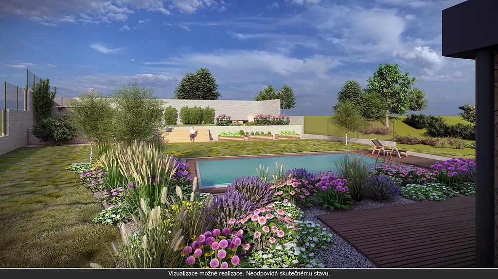 Zahrada obklopuje dům jako přirozené pokračování interiéru. Ocení ji nejen děti, ale i nadšenci do pěstování – díky rozloze a orientaci je připravena na sezónní rytmus zeleniny i relaxace. Samotný provoz domu se řídí přes inteligentní systém LOXONE, který automatizuje mimo jiné osvětlení, vytápění, venkovní žaluzie, přístupy, zabezpečení, multimédia i zavlažování. Dům se přizpůsobuje dennímu rytmu domácnosti a dokáže si i „zavolat pomoc“ – například při aktivaci požárních čidel nebo při simulaci přítomnosti při odjezdu na dovolenou.