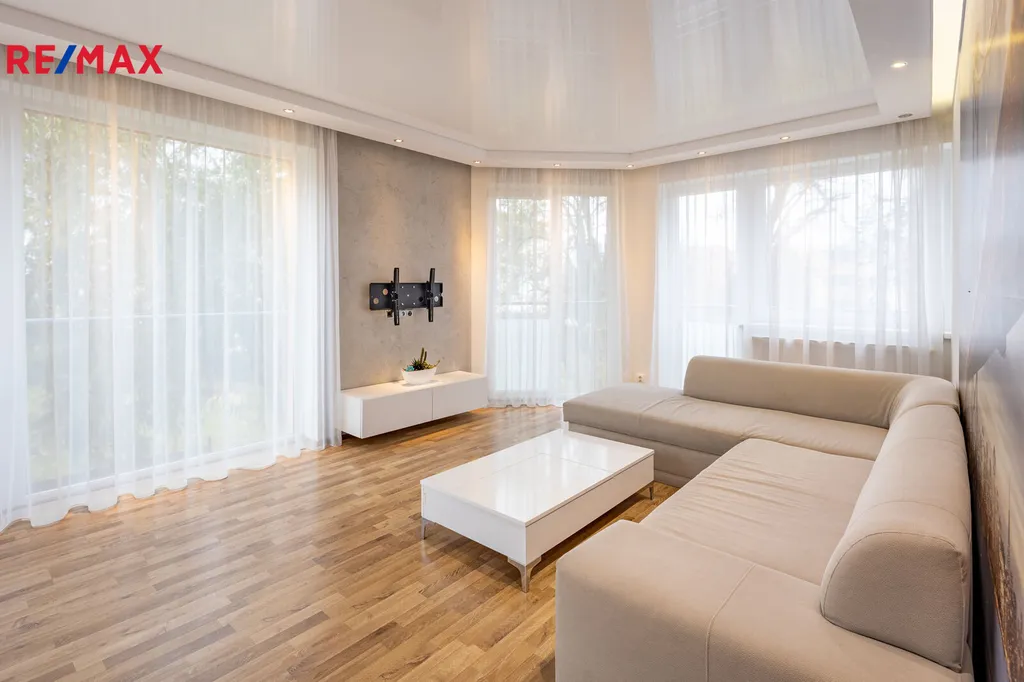 Byt o celkové ploše 83 m² je kompletně vybaven a nachází se v prvním podlaží pětipodlažního domu. Disponuje balkonem o ploše cca 5 m² a sklepem o velikosti 3 m². K bytu náleží vyhrazené parkovací stání vedle budovy.