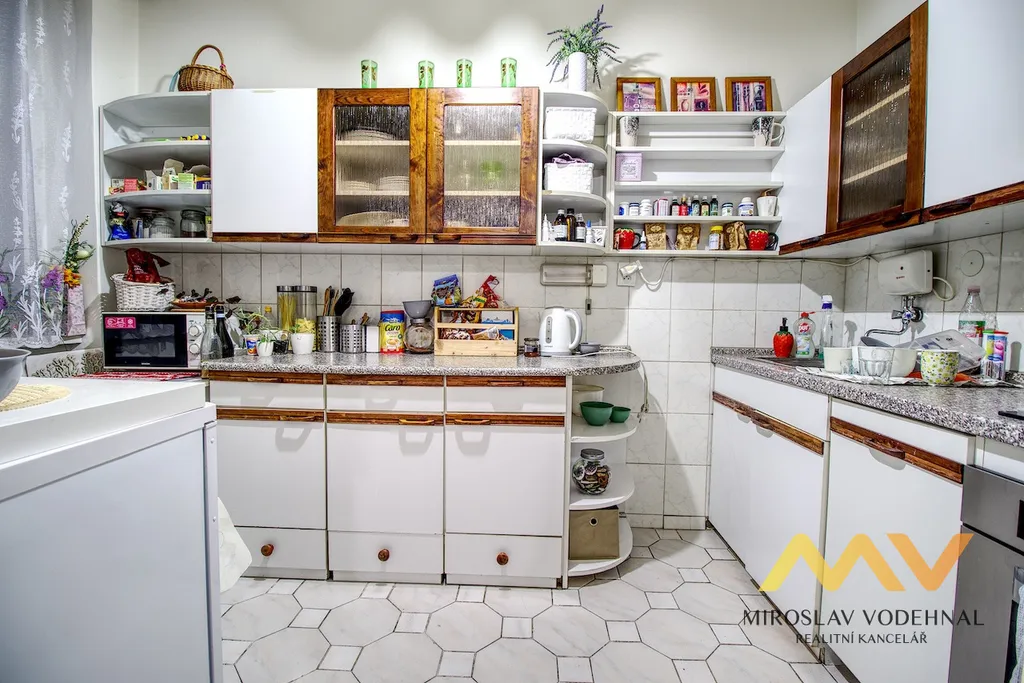 Dispozice: 2x pokoj, kuchyň, koupelna, WC, předsíň. Jedná se o částečně zařízený byt s průchozími pokoji, nová plovoucí podlaha, nová plastová okna. Kuchyň je vybavena starší kuchyňskou linkou s novým komb. sporákem, lednicí s mrazákem, mikrovlnnou troubou. V obývacím pokoji je, jídelní stůl se židlemi. V ložnici velká šatní skříň. Koupelna s vanou, toaleta je samostatně. V prostorné předsíni je prostor na pračku i sušičku prádla. Internet zaveden (300 Kč/měsíc), vytápění lokální (nové wafky), ohřev vody el. bojlerem. Ve vnitrobloku za domem je zeleň a hřiště. Sklep není k dispozici.