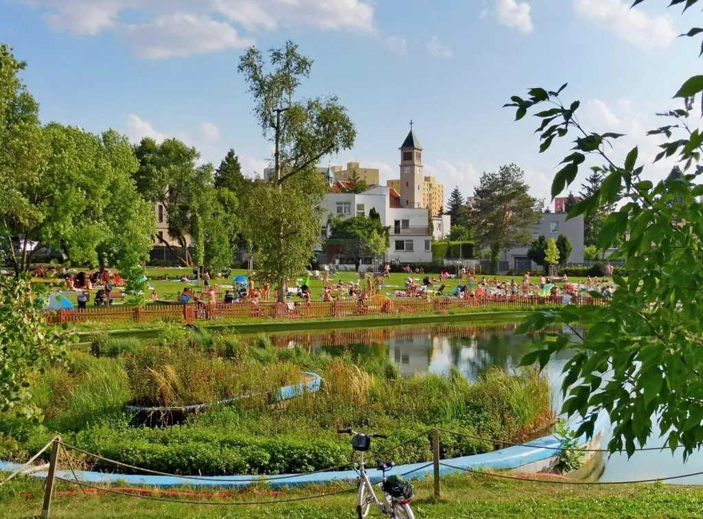 - Přírodní koupaliště Biotop Lhotka a les Velký háj 5 minut chůze od domu