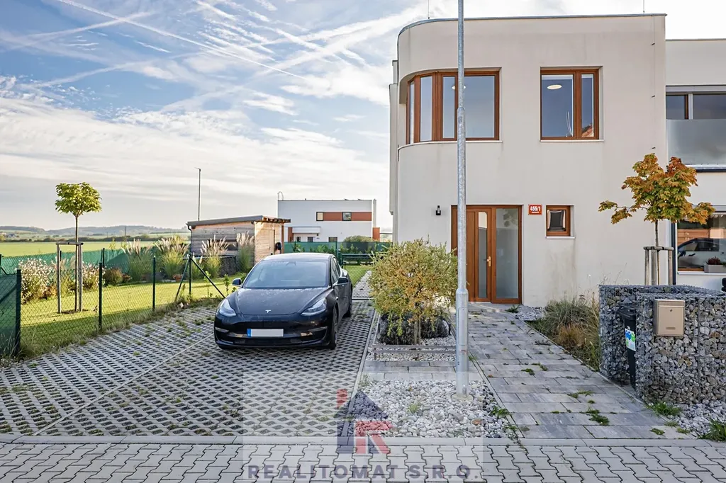 Nabízím exkluzivně moderní nízkoenergetický rodinný dům 4+kk s prostornou terasou, dvě parkovací stání k tomu a zahradní domek v Horoušánkách na Praze - východ.