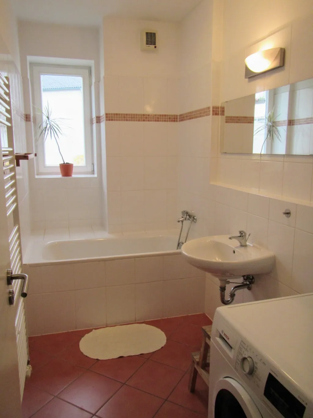 Byt se nabízí nevybavený. Kuchyně disponuje myčkou, elektrickou troubou, varnou deskou a digestoří. Obývací část je nezařízena. V koupelně je vana, umyvadlo. Toaleta je umístěna samostatně.