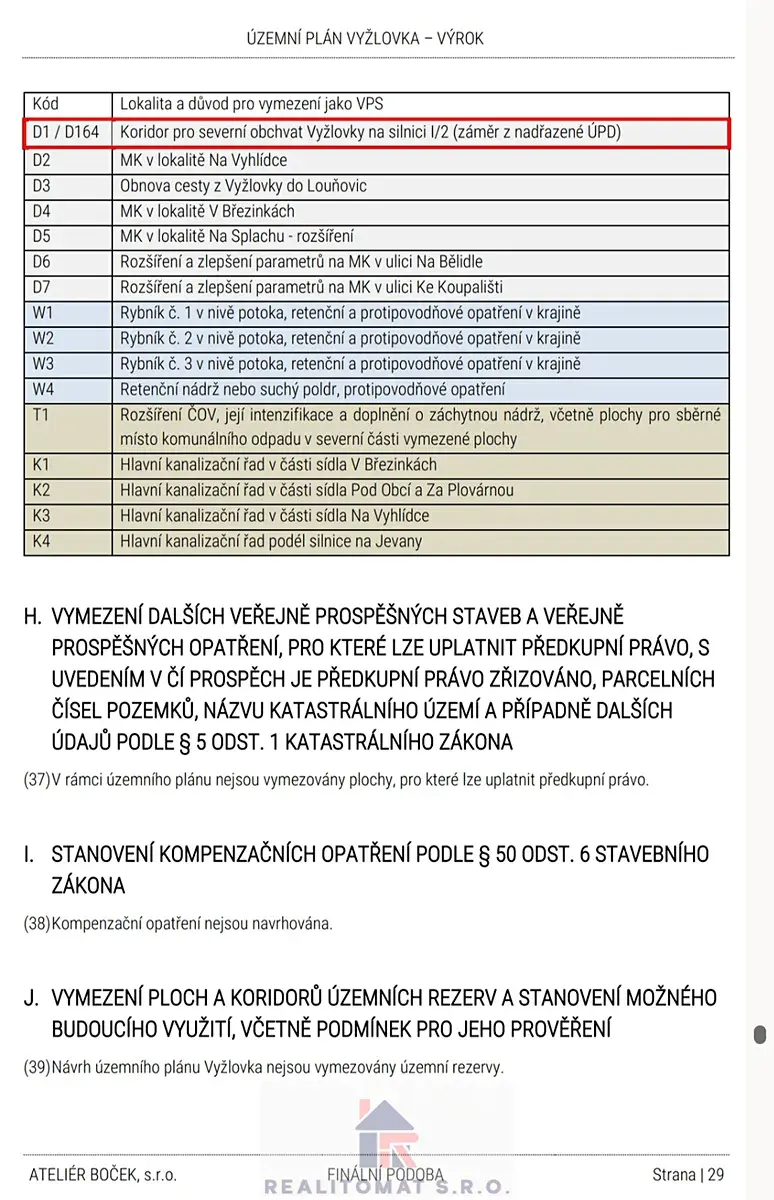 Nabízíme Vám ke koupi pozemek v katastrálním území Vyžlovka, Praha - Východ o výměře 2670 m2, který je na listu vlastnictví zapsán jako orná půda a nachází se mezi zástavbou rodinných domů. Příjezd na pozemek je zajištěn přes obecní komunikaci - Pražská. Dle navrhovaného územního plánu je tento pozemek veden jako Smíšené obytné území (zastavitelná plocha). Aktuálně je pozemek veden jako – orná půda – plochy zemědělské - 2 třída ochrany. Aktuálně je v obci dostatek stavebních parcel a záměr změny územního plánu na stavební parcely je ve výhledu 5 let dle sdělení pracovnice úřadu, proto lze koupi vnímat jako zajímavou investiční příležitost pro stavbu 3-4 rodinných domů. Možnost koupit celkem 5 341 m2 - až 8 rodinných domů.