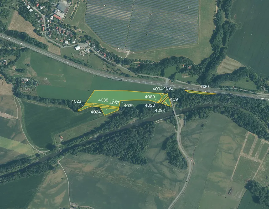 Celková výměra všech pozemků činí 24 606 m², přičemž předmětem prodeje je 12 303 m².