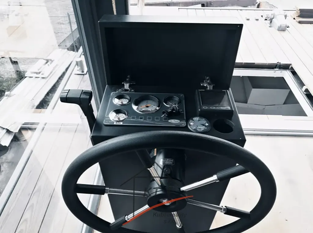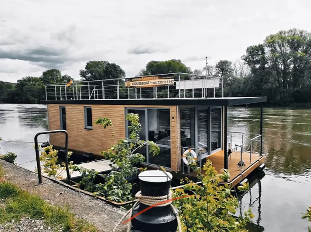 Nabízíme vám kompletně zařízený Houseboat o výměře 140 m2, který poskytuje pocit bydlení na vodě pro rekreační účely. Výroba probíhá v loděnici pod dohledem mezinárodně uznávaných kontrolních institucí (Lloyd's Register of Shipping, Germanische Lloyd a Bureau Veritas). Ocelové části jsou buď z nerezové oceli AISI316, nebo žárově pozinkované oceli. Stavby jsou navrženy v souladu s místními povětrnostními, vodními a zimními vlivy. Nejprve je stavba postavena ve výrobní hale Loděnice Barkmet a pak následně dopravena do místa kotviště. Základní výbava plovoucího domu obsahuje hlavní motor (Allpa, Vetus), dokormidlovací zařízení, kotva a kotevní systémy (dalby), nádrže - pitná voda, palivová a fekální nádrž a balastní nádrže (vyvážení trupu). Plovoucí dům je vybaven nejnovějšími technologiemi pro zajištění energetické účinnosti. Inteligentní vybavení systému pro úsporu energie a technologií umožňuje dosáhnout až LEED hodnocení. Energeticky/efektivní izolace a okna s trojsklem jsou standardní řešení. Dům je vybaven slunečními kolektory, které vyrábí teplou vodu pro domácnost, ve slunném období nabízí velmi nízkou spotřebou energie. O vytápění domu se vám postarají ekonomické sálavé infra panely s nastavitelným termostatem. Všechny tyto systémy a stavební materiály pomáhají šetřit Vaše peníze i životní prostředí v dlouhodobém horizontu. Rozměry - délka - 17m, šířka- 8,2m (ocel, povrchová úprava lodní barvou HEMPL). Technické parametry a vybavení: naftový motor Solé Diesel Allpa 35 HP, Elektro 220W, přední dokormidlovací zařízení, kotevní elektrický naviják, WC s lodním panelem (lodní fekální nádrž), sprcha, boiler, cisterna na vodu 1000litrů (užitková voda a odpadní), balastní nádrže (vyvážení trupu)Vybavení - lednice, sporák indukční, mikrovlnka, alarmový systém střežení, moderní led osvětlení, elektrické vyhřívané podlahy+ vybasto (diesel. horko-vzdušní topení). Houseboat není závislý na elektro - břehové přípojce kvůli solárním panelům - velmi ekonomická spotřeba- funkčnost pří úplném vypnutí elektřiny (alarm zařízení, lednice, boiler, osvětlení ). Energeticky/efektivní izolace a okna s trojsklem jsou standardní řešení. Dům vybaven slunečními kolektory, které vyrábí teplotu vody pro domácnost, ve slunném období nabízí velmi nízkou spotřebu energie. O vytápění domu se vám postarají ekonomické sálavé infra panely s nastavitelným termostatem. Všechny tyto systémy a stavební materiály pomáhají šetřit Vaše peníze i životní prostředí v dlouhodobém horizontu. 4 místa na spaní, palubní terasa a patrová terasa s další možnosti využiti - vířivka, terasa na opalování, grilování. Při osobní prohlídce a i projížďce na vodě nejlépe posoudíte, zda je tento houseboat vhodný právě pro Vás. Nabízíme vám možnost financování naším smluvním partnerem. Pro více informací nebo sjednání prohlídky kontaktujte certifikovaného realitního makléře.