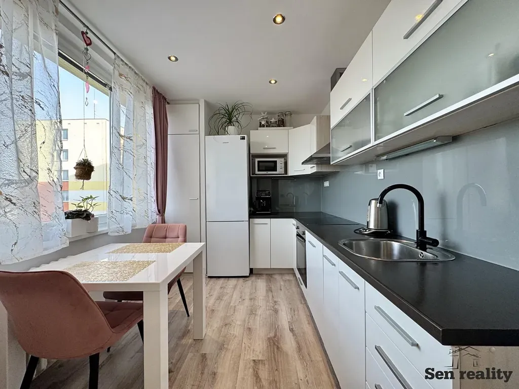 Byt prošel celkovou rekonstrukcí včetně všech rozvodů, zděné jádro, sádrokartonové stropy s bodovým osvětlením, obložkové dveře.