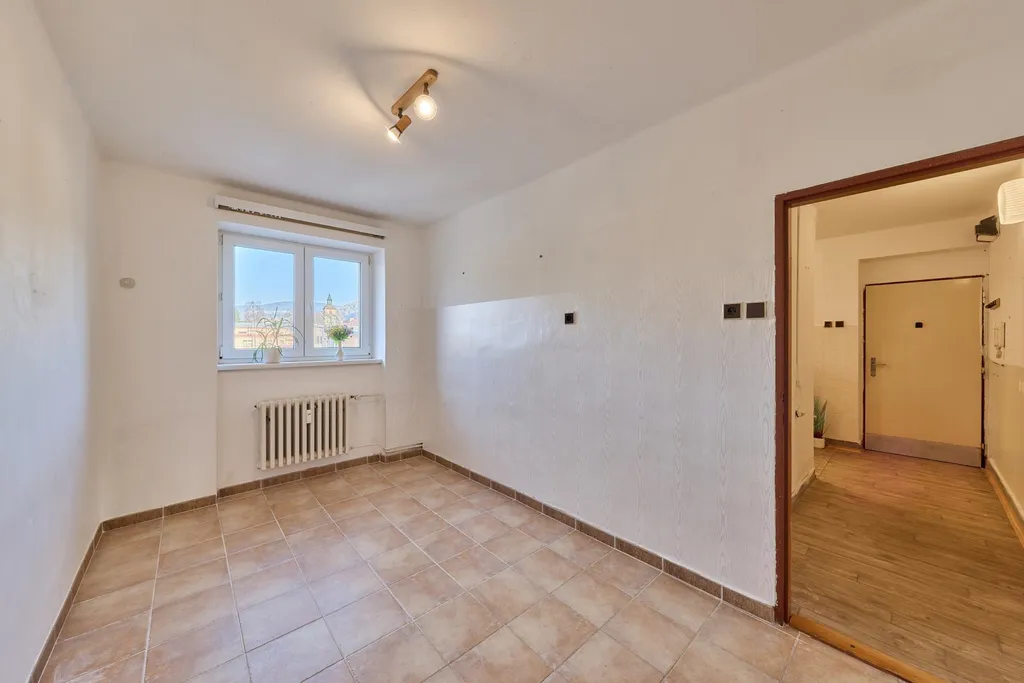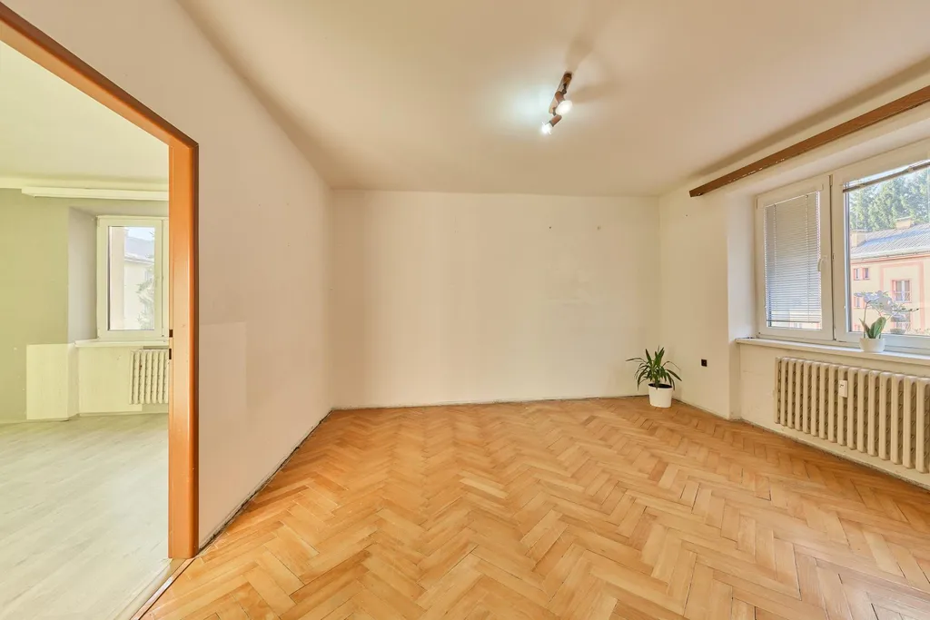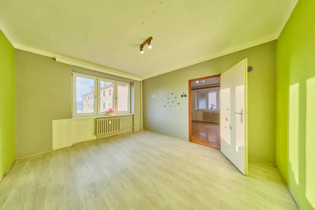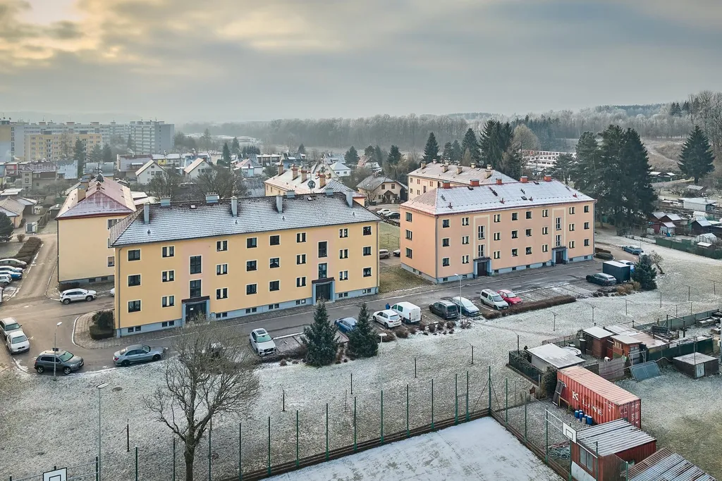 Byt je v osobním vlastnictví a nachází se ve 2. NP zděného třípodlažního bytového domu s výhledem na fotbalové hřiště v Horním Starém Městě. Byt je v původním, udržovaném stavu, má nová plastová okna, podlahy v bytě linoleum, dlažba, plovoucí podlaha a v obývacím pokoji jsou původní parkety. Majitelé vyřešili chybějící pokoj pro děti úpravou dispozice tak, že umístili kuchyňskou linku do prostorné chodby.