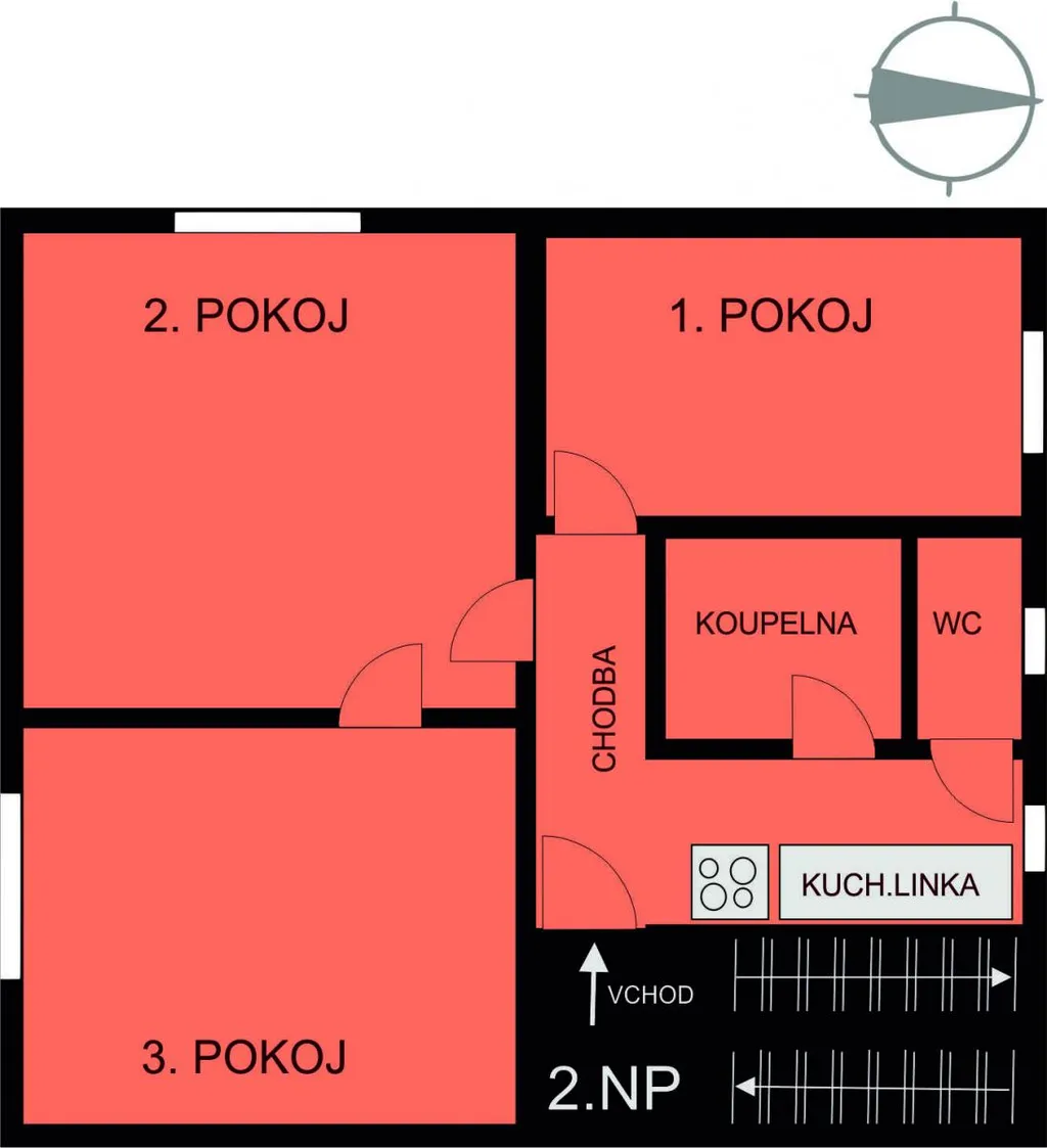 Dispozice: 1. pokoj - 10,08 m2, obývací pokoj - 17,10 m2, 2. pokoj 14,48 m2, chodba s kuchyň. linkou 8,42 m2, koupelna 3,60 m2, wc 1,42 m2. K bytu náleží 2 sklepy 3,83 m2 a 5,91 m2. Výhodou je také vlastní parkovací místo u domu. Využít můžete společnou sušárnu v suterénu, zároveň je možnost využít sušáky i na travnatém pozemku u bytového domu. PENB - C.