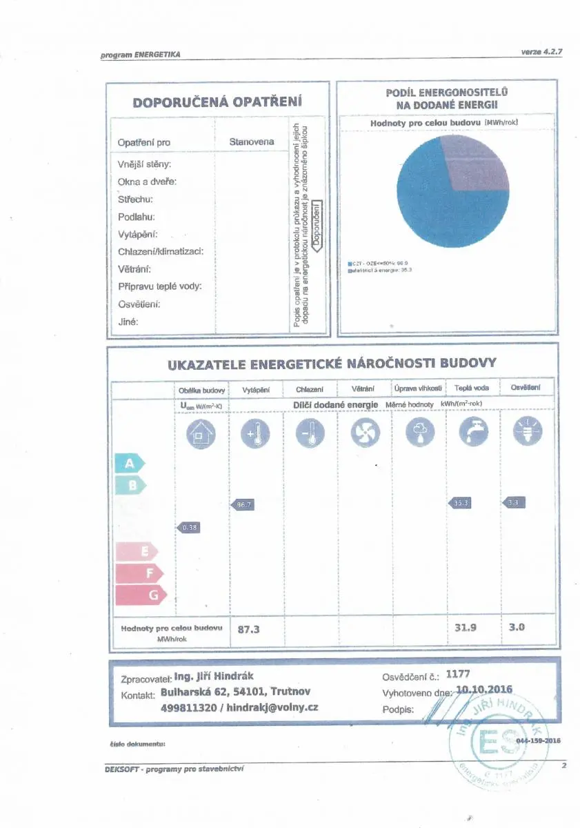 Bytový dům o třech podlažích je zateplený, to vypovídá o úspoře nákladů za vytápění, které je řešené ústředním vytápěním. Bytový dům je ve velmi dobrém stavu, s upravenými a udržovanými společnými prostory. Veškerá občanská dostupnost v místě-školka, škola, obchody, supermarket, MHD, vlak, zdravotní střediska. Pokud uvažujete o nákupu investiční nemovitosti, je tato lokalita ideální pro dlouhodobý pronájem. Pronájem zajistíme v případě zájmu.