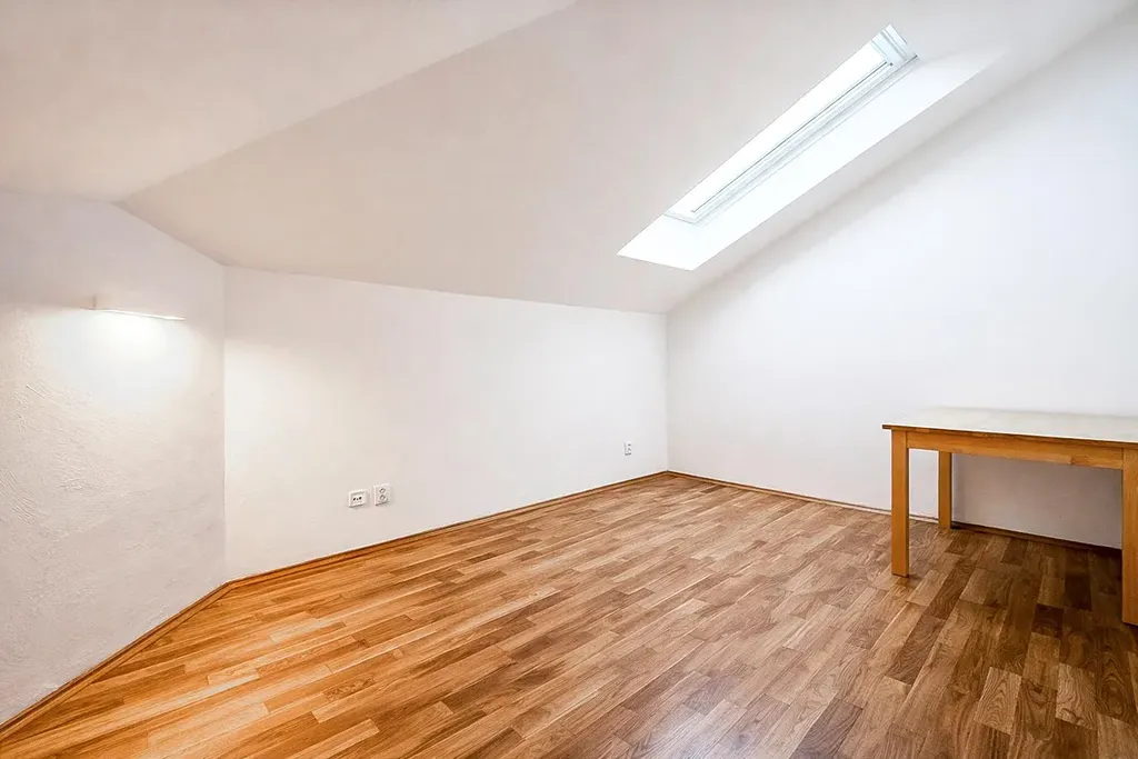 Na podlahách jsou nové parkety, nový koberec (na galerii) a dlažba, topení je elektrické (přímotopy), na vodu elektrický boiler 160l, okna jsou střešní, vyjma galerie. Půdní byt byl postaven v r. 1999 (nová střecha, izolace etc.), má absolutní soukromí a je opravdu tichý. Byt je po renovaci, má novou kuchyni, nová bílá trosklenná okna (skvělá izolační vlastnosti), v ložnicích jsou rolety s 100% zastíněním, v pokoji polopropustné, vymalováno, atd.