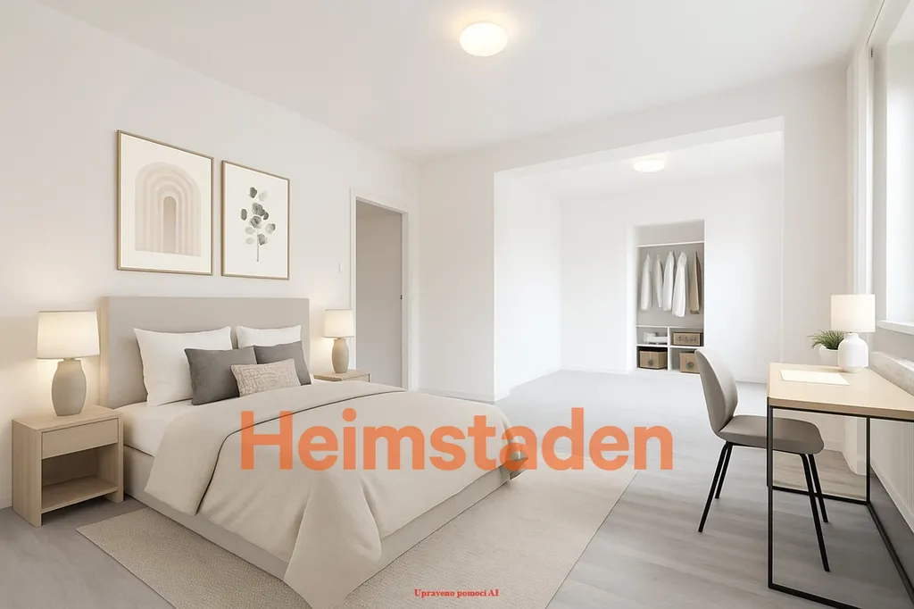 Dispozice bytu je průchozí, kdy z útulného obývacího pokoje vstupujete do velkorysé ložnice, která nabízí nadstandardní prostor. Ten lze snadno rozdělit na klidovou část, pracovní kout i šatnu, a přizpůsobit si jej tak přesně podle vlastních potřeb a životního stylu.