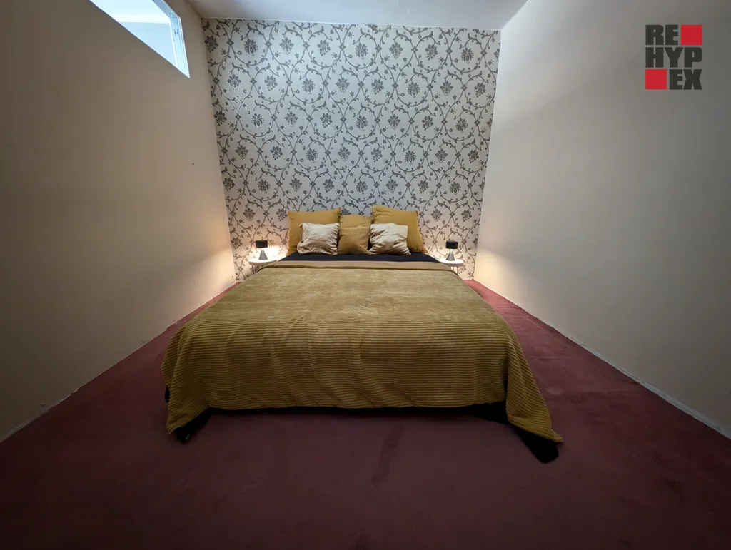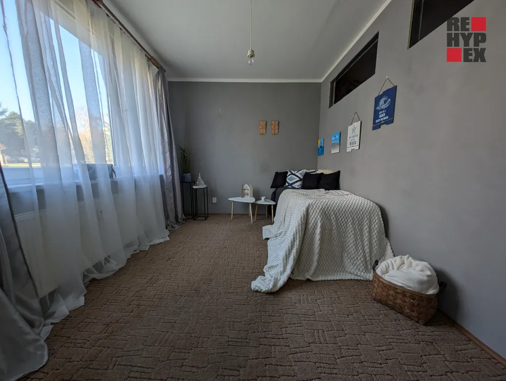jedna z místností je rozdělena sádrokartonovou příčkou – možnost využití jako další ložnice, pracovna nebo šatna