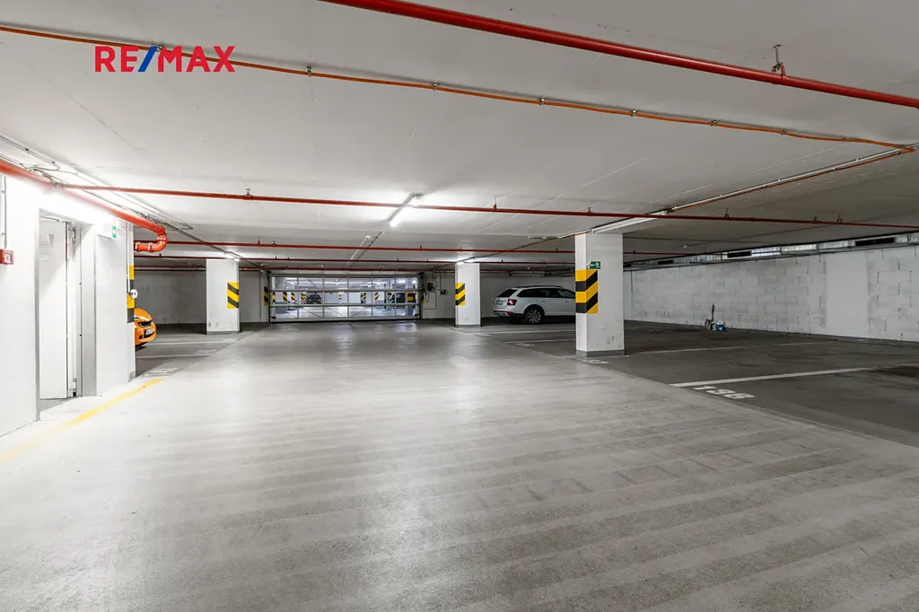 Součástí nájmu je parkovací stání v garáži v suterénu domu.