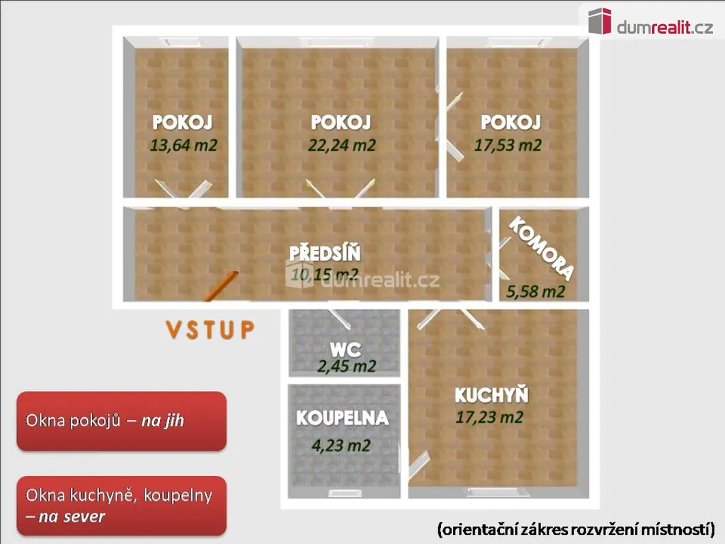 Dumrealit.cz Vám zprostředkuje exkluzivně pronájem pěkné, prostorné, prosvětlené bytové jednotky dispozicí 3+1 umístěné ve 2.nadpodlaží cihlového domu na ulici Sokolovská, Karlovy Vary - čímž máte krátkou dostupnost (cca 10minut) do centra města. Celková plocha 93,5 m². (Pokoj 1: 13,64 m², pokoj 2: 22,24 m², pokoj 3:17,53 m², komora: 5,58 m², WC: 2,45 m², koupelna: 4,23 m², kuchyň: 17,23 m², předsíň: 10,15 m²). Bytová jednotka má plastová okna, vkusnou sjednocenou plovoucí podlahu u všech místností, mimo koupelny a WC. Moderní koupelna nabízí sprchový kout. WC je zvlášť. Kuchyň současně probíhá renovací. Vytápění a ohřev vody zajišťuje úplně nový plynový kotel - montáž prosinec 2025. Plusem je komora, navazující na předsíň. Je zde umístěn plynový kotel a zároveň se prostor dá využít např. jako úložný. Orientace pokojů je na jižní a kuchyň severní stranu. Byt je v podílovém vlastnictví. Měsíční nájem 15.000,-Kč + zálohy za služby, tj. voda, společná elektřina, odvoz odpadu: 1.300,-Kč/osoba. Za každou další osobu 500,-Kč/měsíc. Vratná kauce ve výši 30.000,-Kč. Provize RK 10.000,-Kč vč. DPH. Elektřinu a plyn si nájemce sjedná s dodavateli služeb. Byt se pronajímá nezařízený. K pronájmu dlouhodobému, počínaje lednem 2026. Majitel požaduje slušné, čistotné nájemníky, nekuřáky - respektive v bytě, domě nekouřit. Bez zvířat. (Vzhledem k tomu, že před zadáním do inzerce nebyl vyhotoven PENB, je tento byt v souladu s platným zákonem zařazen do energetické třídy G). Ev. číslo: 653347.