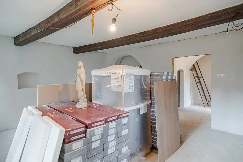 Exkluzivně nabízíme k prodeji rodinný dům / chalupu v klidné části obce Zámrsk. Stavba pochází z konce 18. století a v roce 2021 ji současní majitelé zakoupili s cílem vytvořit pohodlné a moderní bydlení se zachováním venkovského charakteru. Ihned po koupi byla zahájena kompletní rekonstrukce, která zahrnovala klíčové stavební a technické úpravy – dům má novou střešní krytinu včetně opraveného krovu a střešních oken, vyvložkovaný komín, vodovodní a kanalizační přípojka včetně domovních rozvodů v plastu, nová elektroinstalace a datové rozvody, nové zateplené podlahy v přízemí s podlahovým topením a zateplené podlahy v patře s rozvody vytápění v patře, chemickou hydroizolaci spodní stavby doplněnou o sanační omítky, zateplené obytné podkroví po celé délce domu se sádrokartonovými podhledy. Do domu je přiveden internet (CETIN), elektroinstalace je dimenzována na instalaci wallbox. U domu je nainstalovaná venkovní jednotka tepelného čerpadla typu vzduch–voda; vnitřní části jsou uskladněny v domě a připraveny k zapojení. Celý dým je možné dále rozšířit díky navazujícím hospodářským částem – dvě stodoly jsou přístupné zvenčí. V přízemí se nachází po pravé straně koupelna s WC. Naproti vchodu se nachází technická místnost a vlevo od vchodu je prostorná světnice s připraveným napojením na krbová kamna, která tvoří srdce celého domu. Patro je řešeno jako volný obytný prostor s plánovanými dvěma ložnicemi a společenským prostorem. Součástí prodeje je kompletní projektová a elektro dokumentace včetně fotodokumentace a architektonických vizualizací interiéru (světnice, koupelna, patro) a také stavební a dokončovací materiál, který je již fyzicky na místě a je zahrnut v kupní ceně. Konkrétně se jedná o laminátové podlahy do celého domu (mimo koupelnu), materiál na obestavbu krbové vložky (Skamotec), sprchovou vaničku z litého mramoru, sprchový kout – zástěnu, vinylovou podlahu do koupelny, zateplovací materiál EPS 70 F180 a zakládací hliníkový profil. Energetický štítek budovy aktuálně uvádí třídu C, a to bez zohlednění instalace tepelného čerpadla a plánované výměny oken a dveří. Projektová dokumentace čeká na ověření stavebním úřadem ve Vysokém Mýtě. Dům se nachází v klidné části obce Zámrsk, téměř na konci slepé ulice s minimálním provozem. Obec Zámrsk leží přibližně 5 km od Vysokého Mýta, protéká jí řeka Loučná a díky své poloze i vybavenosti je ideální volbou pro trvalé bydlení i rekreační využití.