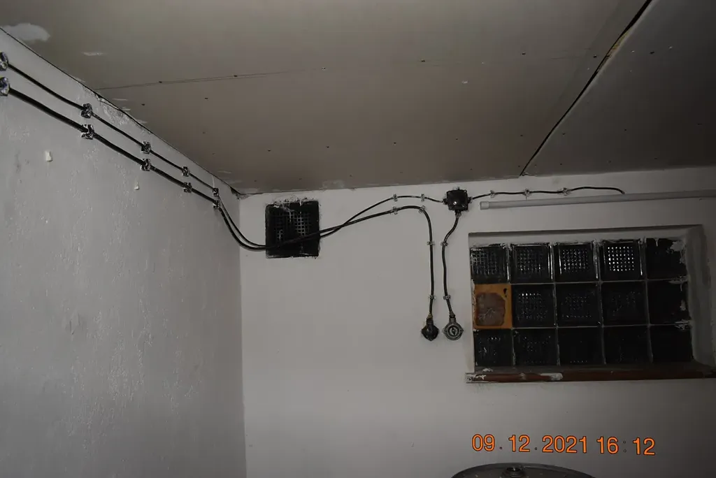 Garáž je prázdná, má dvoukřídlá plechová vrata a el.energii.