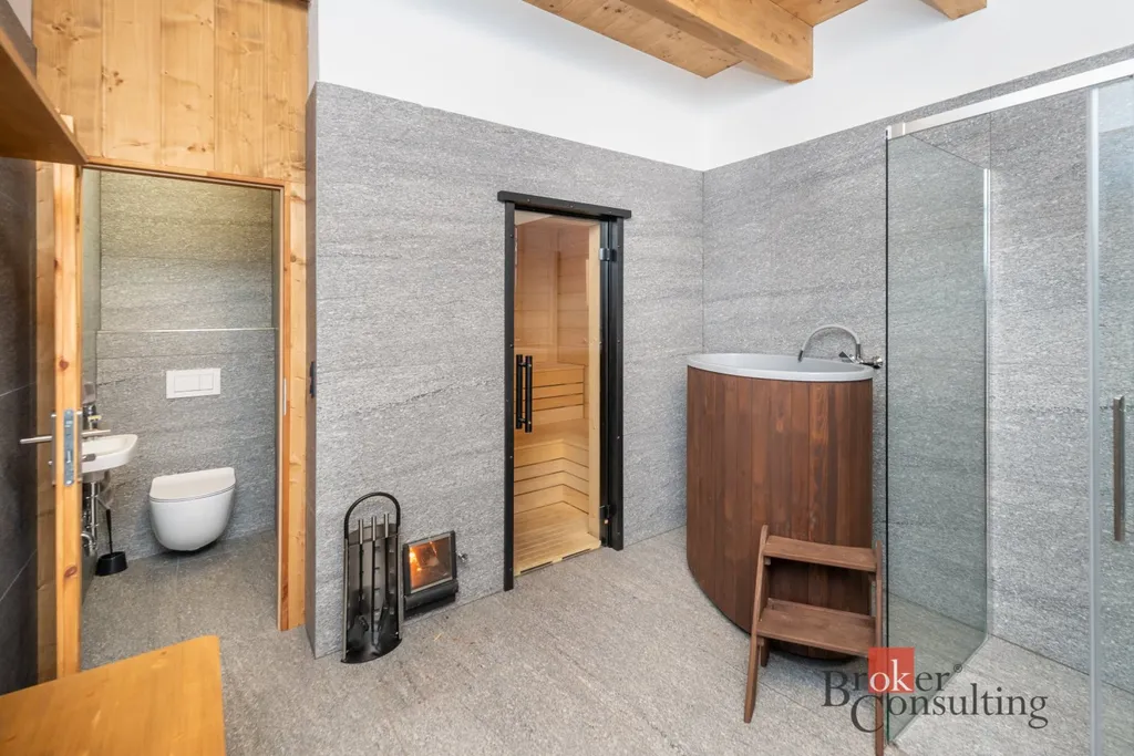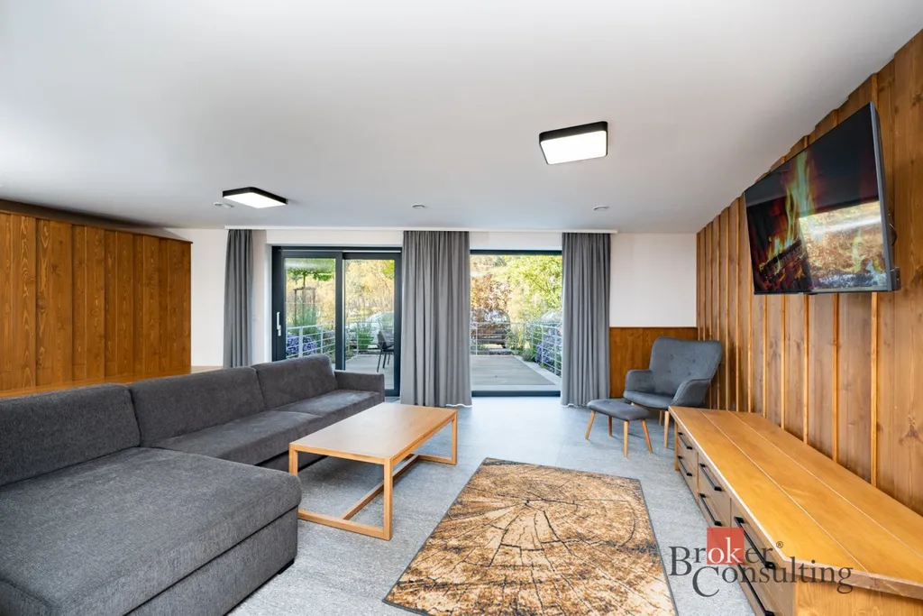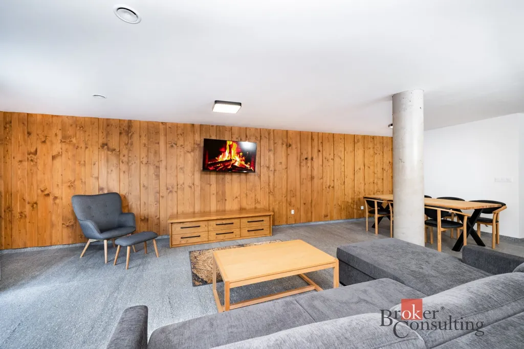 Tato luxusní nemovitost nabízí skvělou možnost kombinace soukromého bydlení a podnikání. Díky třem samostatným apartmánům lze jednotky pronajímat a využívat výhod sezónních výnosů.