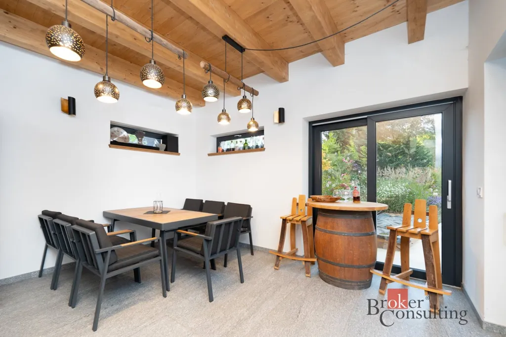 Stavba a bazén jsou vytápěny energeticky úsporným tepelným čerpadlem. Finská sauna vytápěná dřevem pomocí kamen Harvia a venkovní gril na plyn poskytují pohodlí pro venkovní vaření.