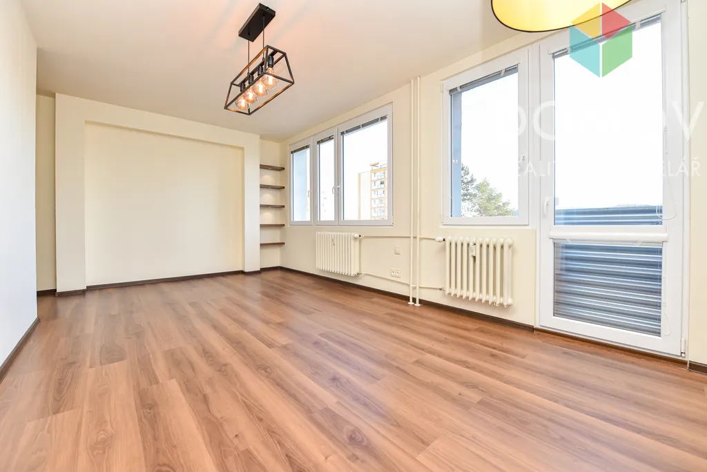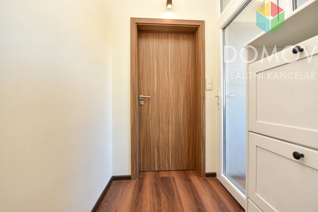 Byt je řešen velmi prakticky včetně úložných prostor - nabízí chodbu, komoru, dva samostatné pokoje a světlý obývací pokoj s kuchyňským koutem, koupelnu se sprchovým koutem a samostatnou toaletu.