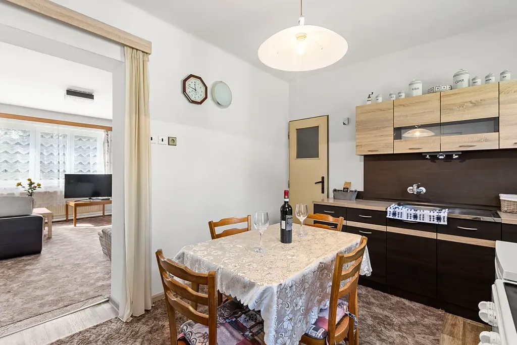 • Přízemí: vstupní veranda, chodba, samostatná toaleta, koupelna, kuchyně s jídelním stolem, obývací pokoj, dva samostatné pokoje a ložnice. Tyto prostory poskytují skvělé zázemí pro rodinný život i případné využití pokoje pro hosty či pracovnu.