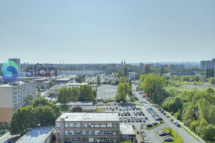 Byt je situován v 14. podlaží z 16. podlažního panelového domu s výtahem, což zajišťuje krásný výhled a dostatek denního světla.