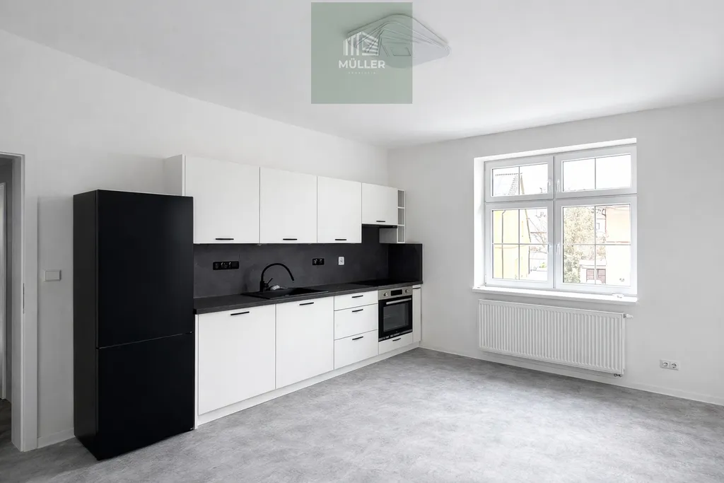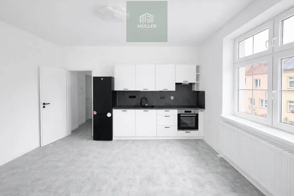 Byt je po velmi zdařilé rekonstrukci a dosud nebyl obýván. Interiér je vkusně a moderně řešen – nové dveře, kvalitní podlahy, moderní osvětlení a nová kuchyňská linka. Kuchyně je vybavena lednicí Hoover, myčkou nádobí (60 cm), elektrickou troubou a elektrickou varnou deskou. V koupelně se nachází sprchový kout.