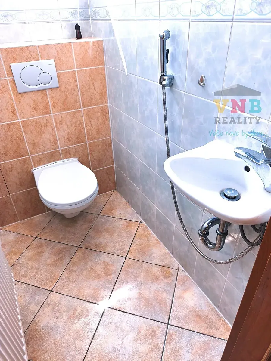 Koupelny jsou moderně vybaveny rohovou vanou, dvěma sprchovými kouty, pračkou, v jedné koupelně je WC, druhé WC je samostatné. V předsíni jsou umístěny dvě velké skříňové sestavy poskytující značný úložný prostor.