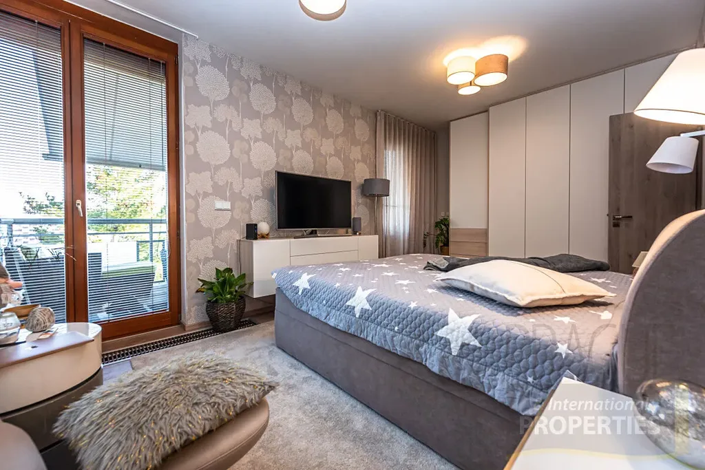 V bytě byly použity velmi kvalitní zařizovací materiály, dřevěné podlahy, elektrické markýzy na terase, kvalitní kuchyňská linka s vestavěnými spotřebiči značky MIele ( trouba, parní trouba atd ), designové osvětlení. Byt je úžasně světlý díky velkoformátovým oknům. Nechybí ani klimatizace.