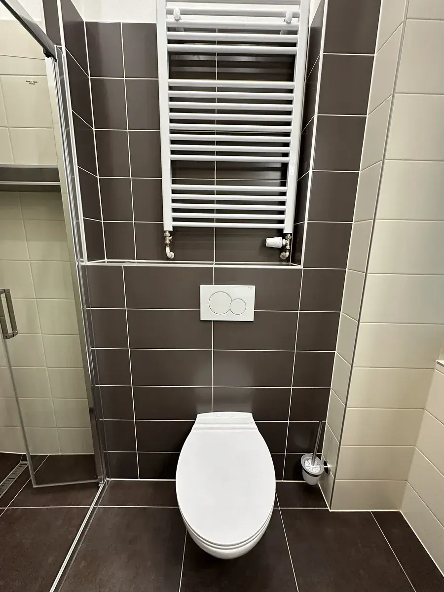 Fotografie interiéru mohou být místy orientační. Vybavení bytu se může mírně lišit od aktuálního stavu – například odlišný obklad za kuchyňskou linkou (červený) nebo drobné změny v nábytku.