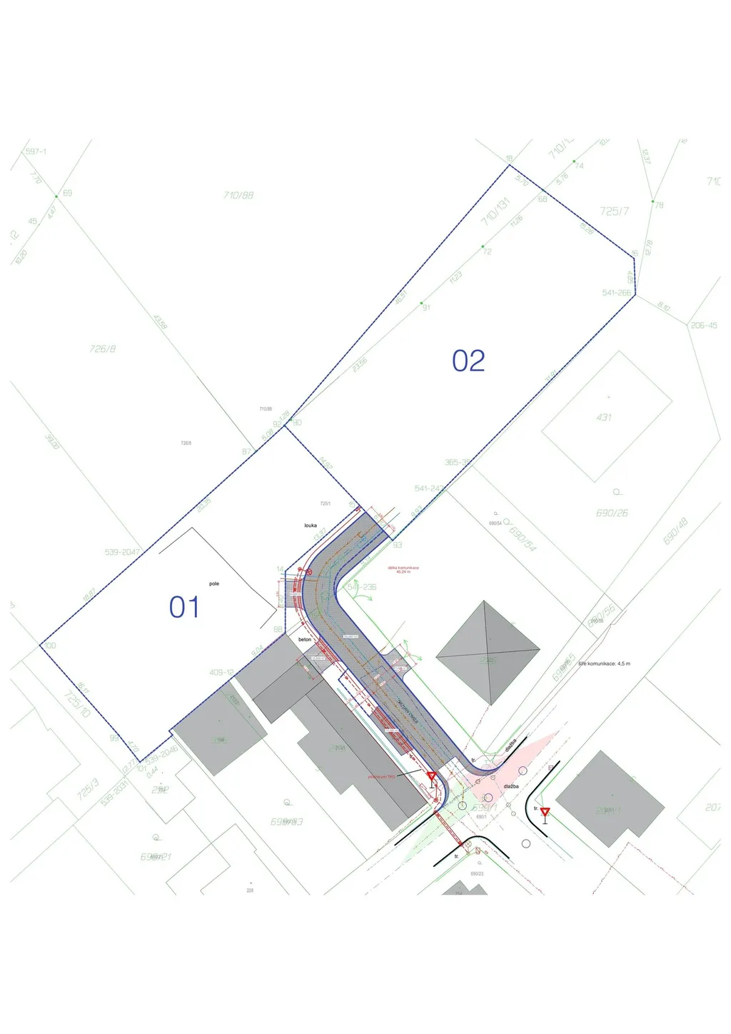 • Pozemek 1: 804 m²