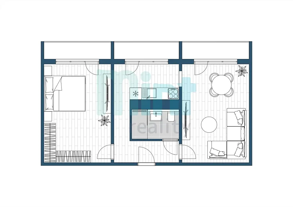 Tři balkony o délce cca 3,4 m a šířce přibližně 0,7 m – přístupné z každého pokoje. Ideální prostor pro ranní kávu, pěstování rostlin nebo menší posezení.
